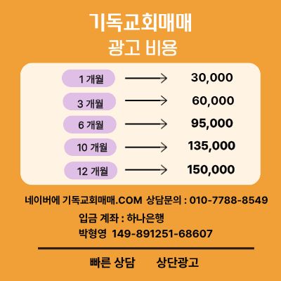 기독교회매매 2026.1.1일 유료 광고 진행 광고 단가 표 [공지] 기독교회매매 2026.1.1일 유료 광고 진행 광고 단가 표